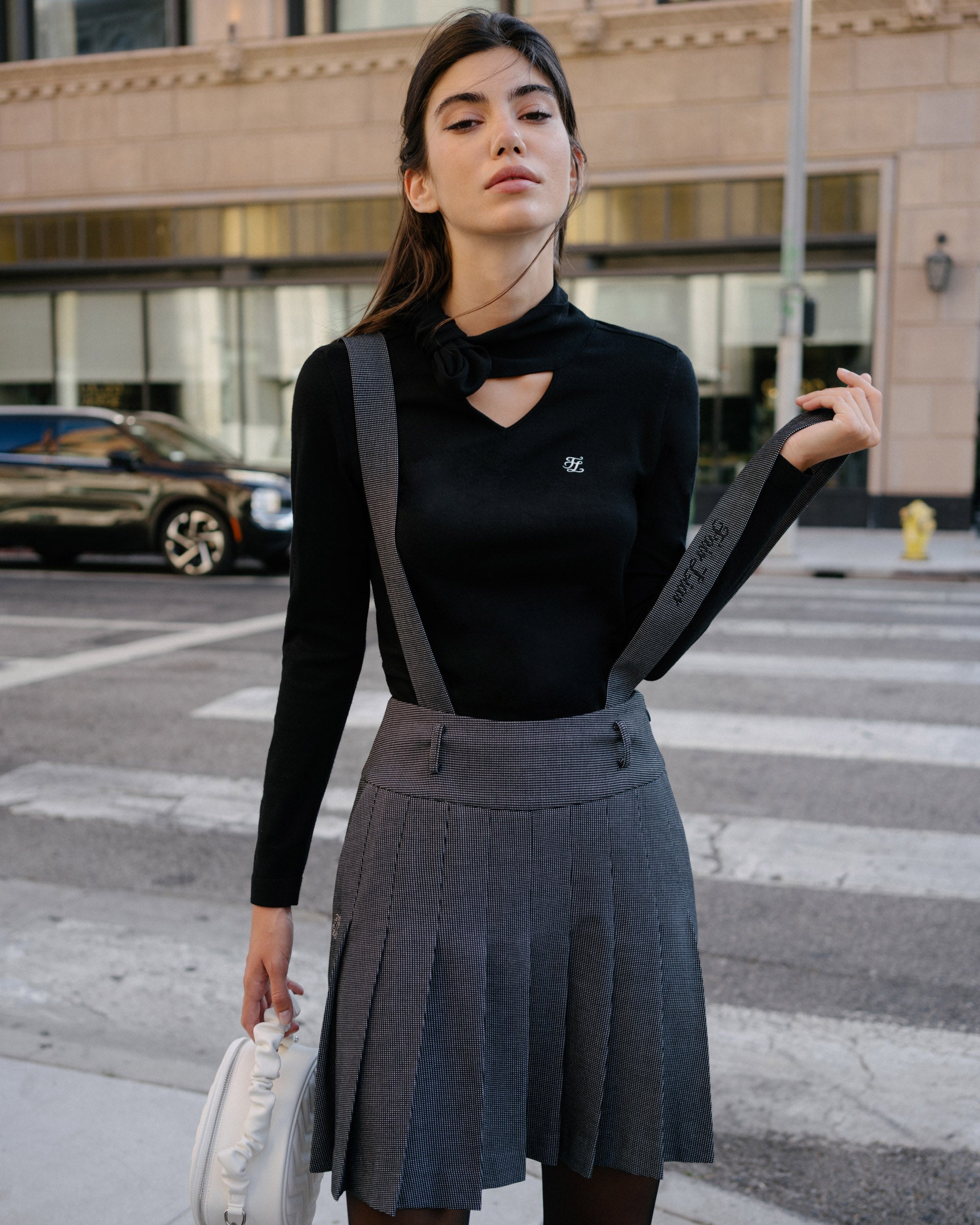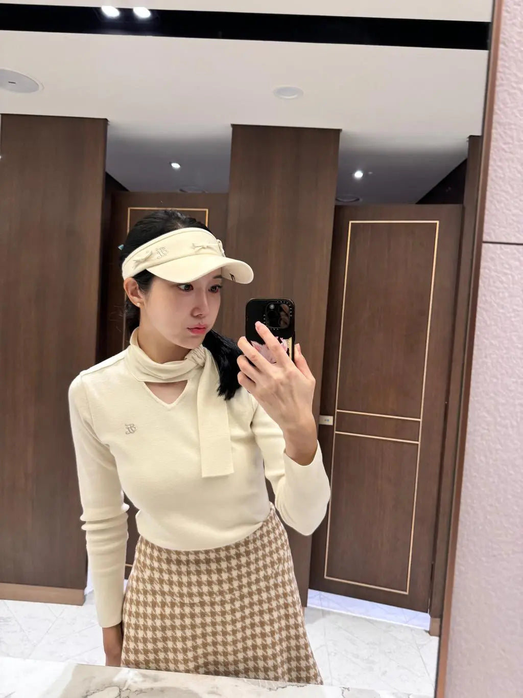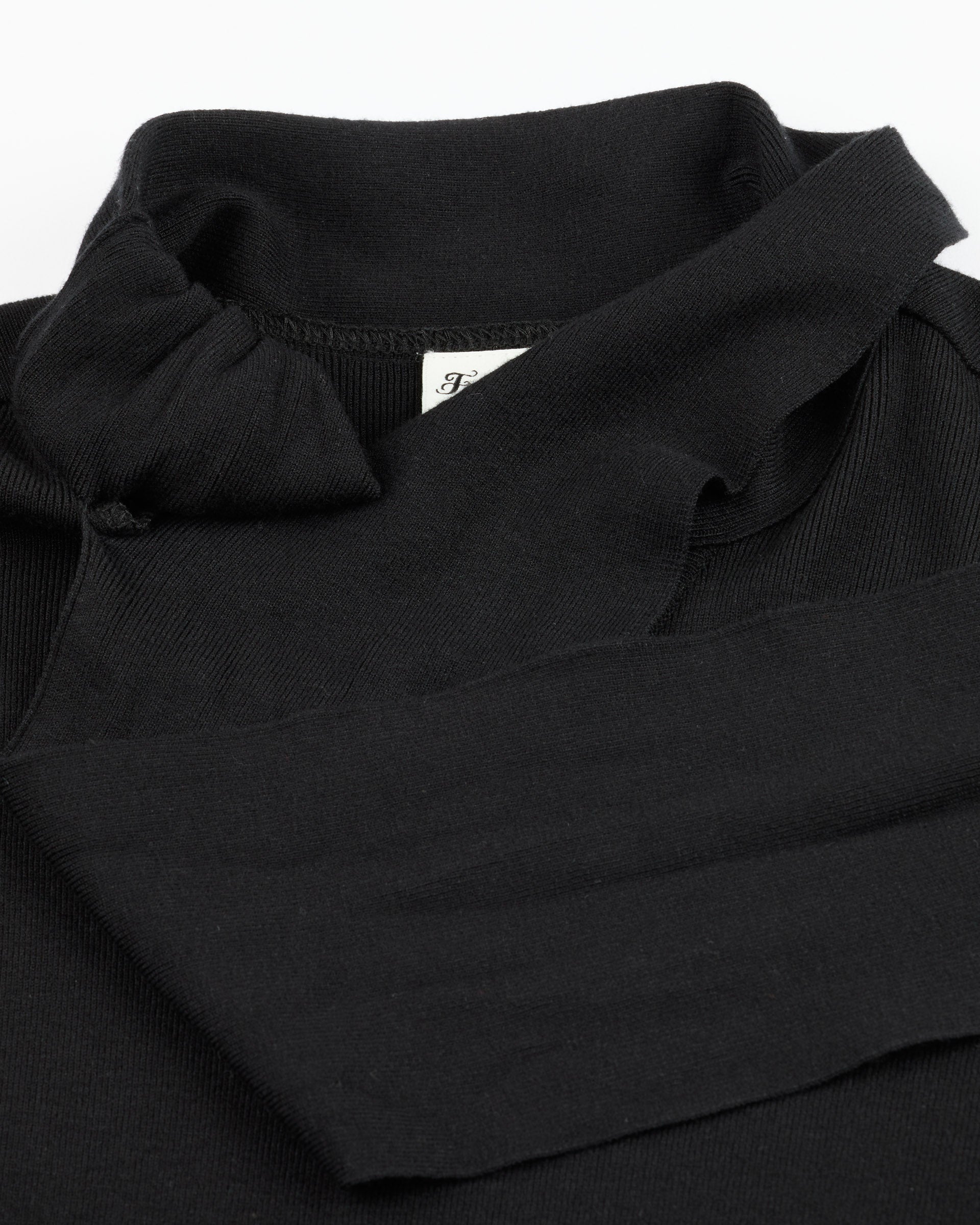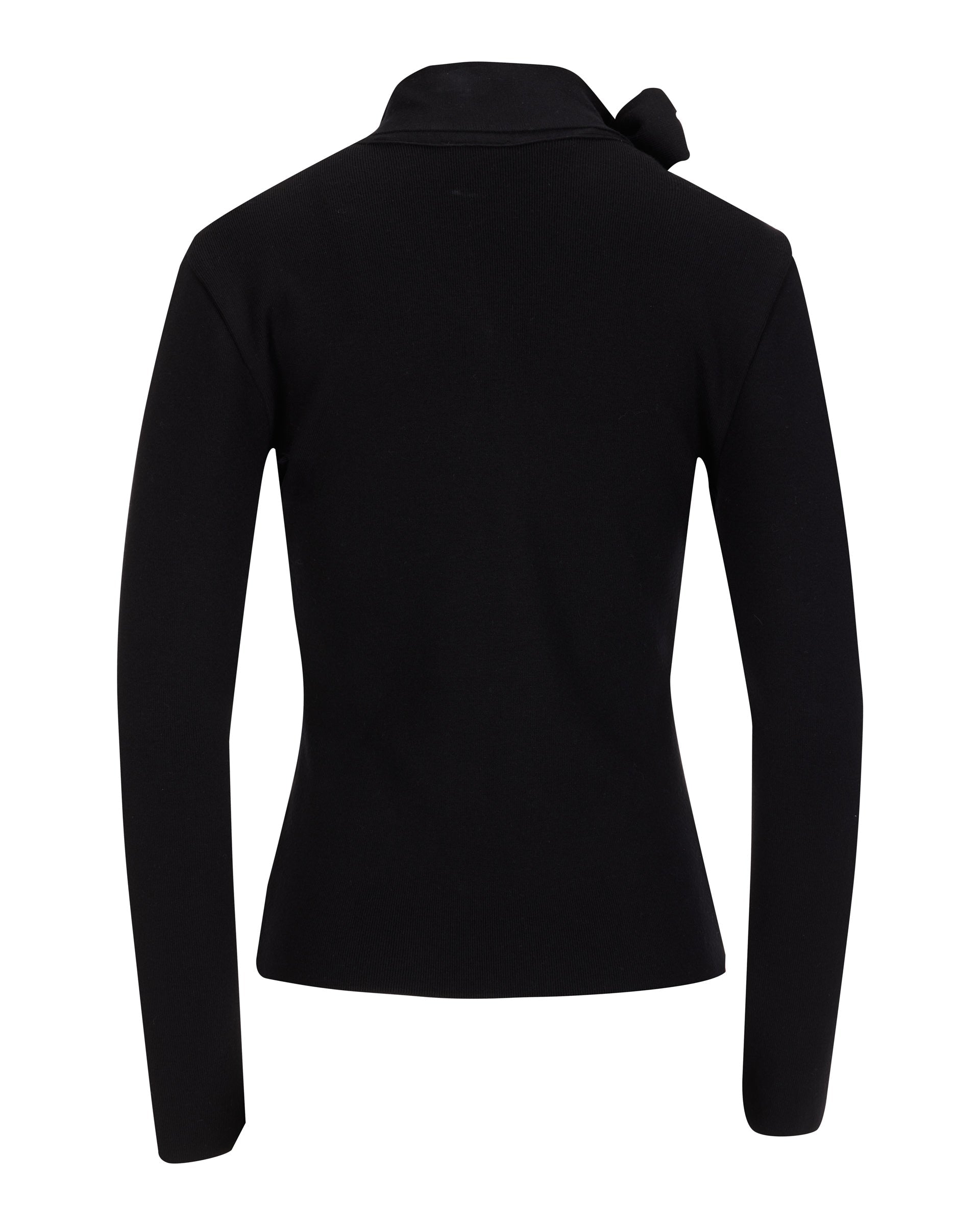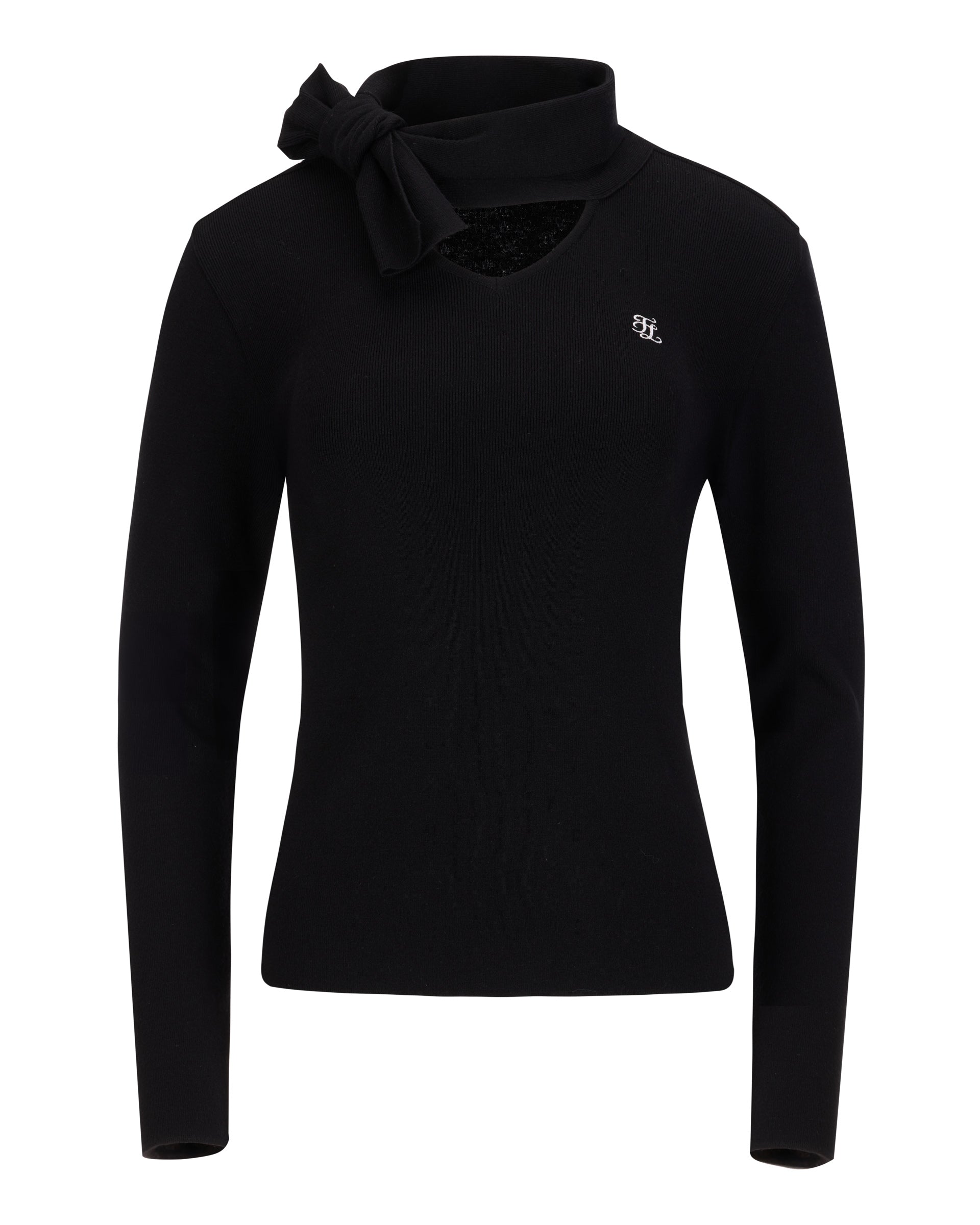 ネック左側には、2WAYでアレンジできるリボンのデザインが施されており、フロントはVネックになっています。 優しい肌触りと伸縮性を兼ね備えた素材を使用しており、快適な着用感を提供します。シンボルロゴ刺繍が施され、洗練された印象を与える一着です。このアイテムはカジュアルからおしゃれなコーディネートまで、幅広いシーンで活躍することができます。