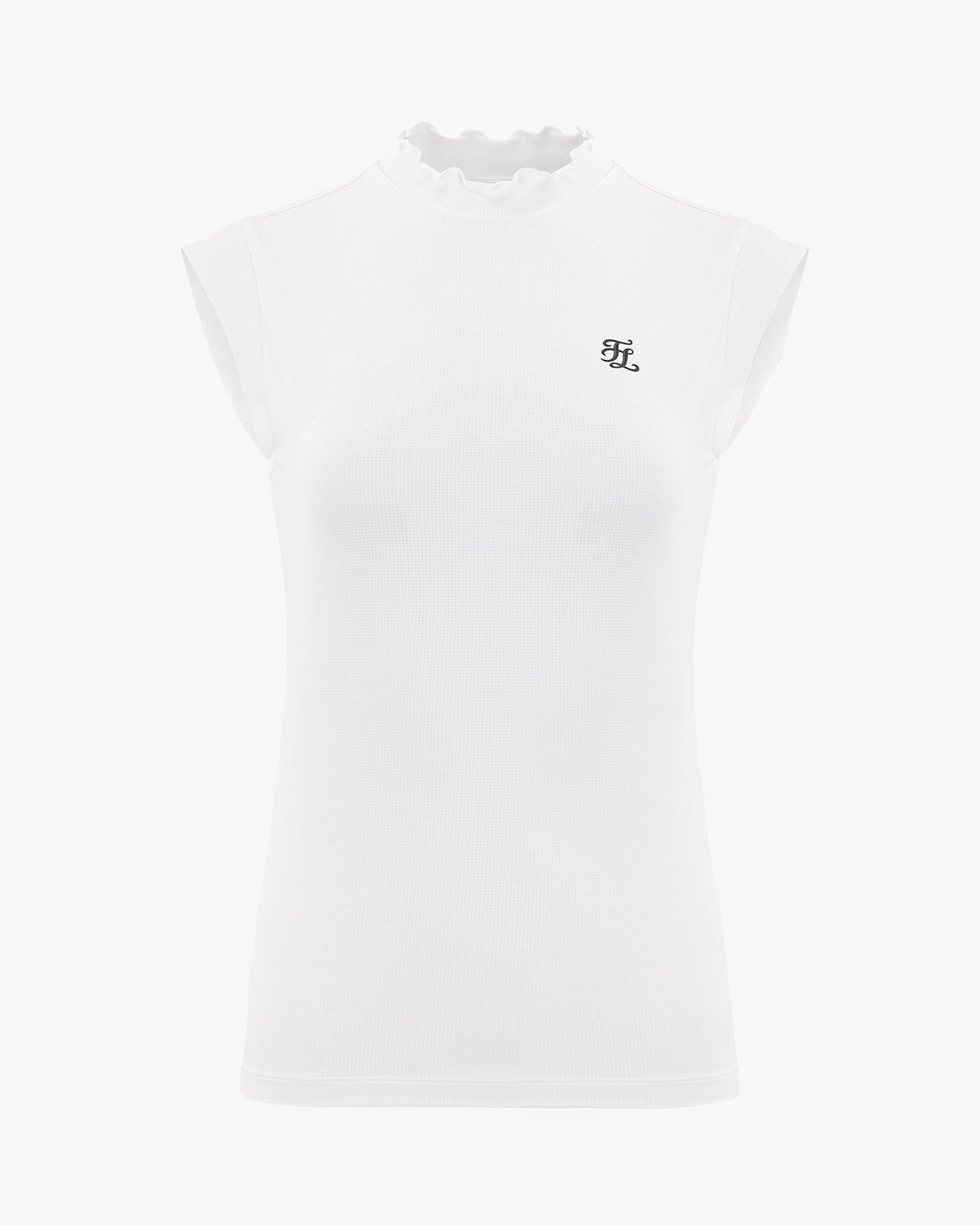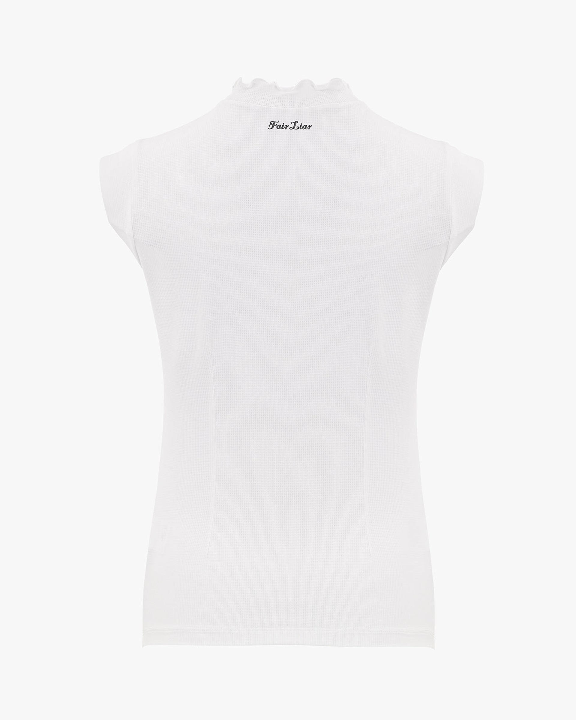 ボディラインに沿った美しいフィット感が際立つスリーブレスTシャツ。特徴的なネックラインのチューリップカラーディテールが、シンプルながらも魅力的なアクセントを加えています。 UVカットと速乾性に優れた高機能素材を使用しており、快適で爽やかな着心地を提供します。モノトーンのカラーバランスが絶妙で、どんなシーンにも幅広くマッチする汎用性の高いアイテムです。