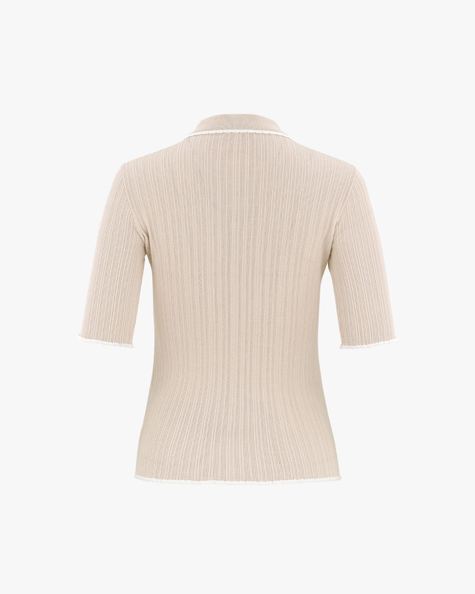 フェイク前立てスリムフィットチルニット。