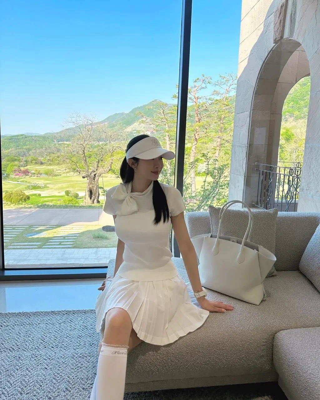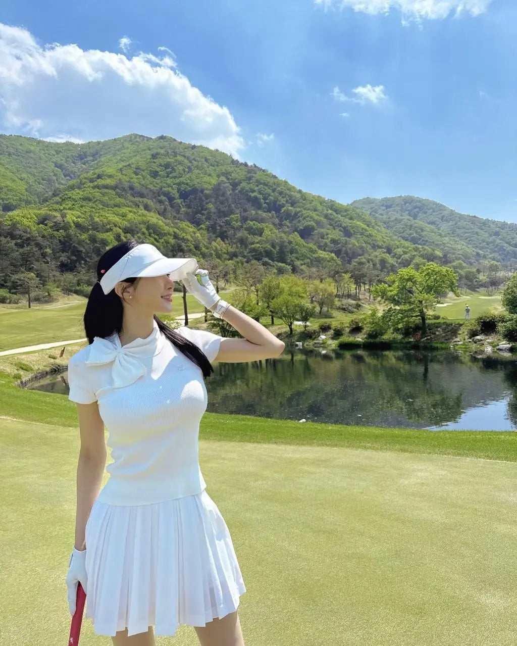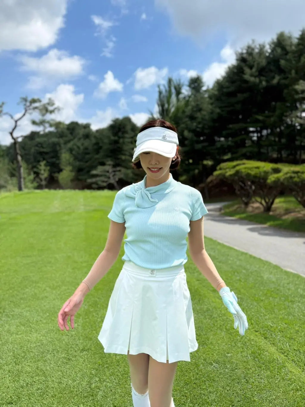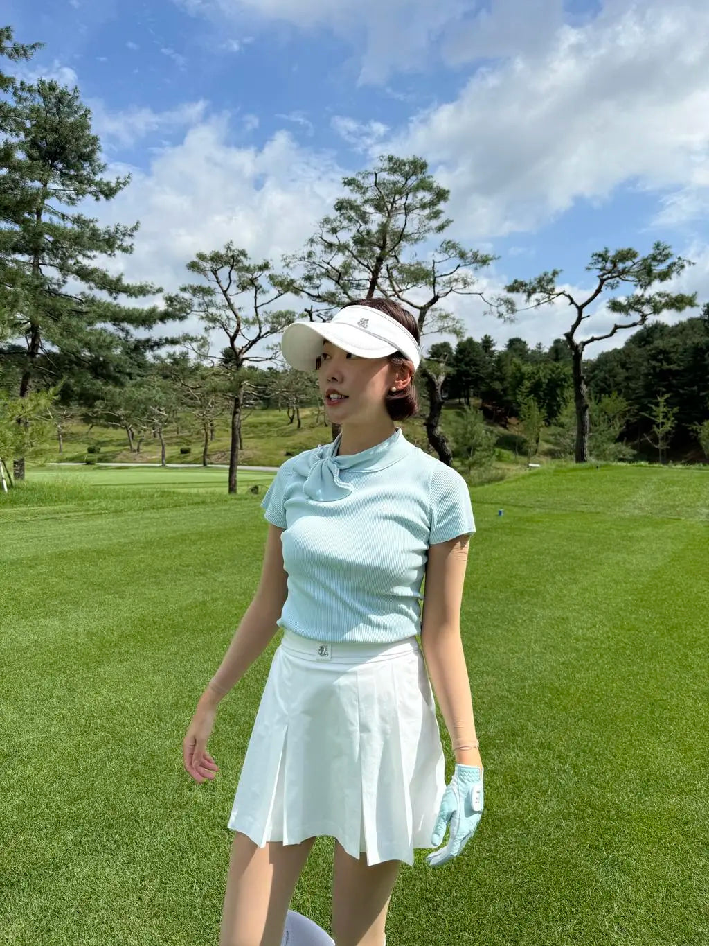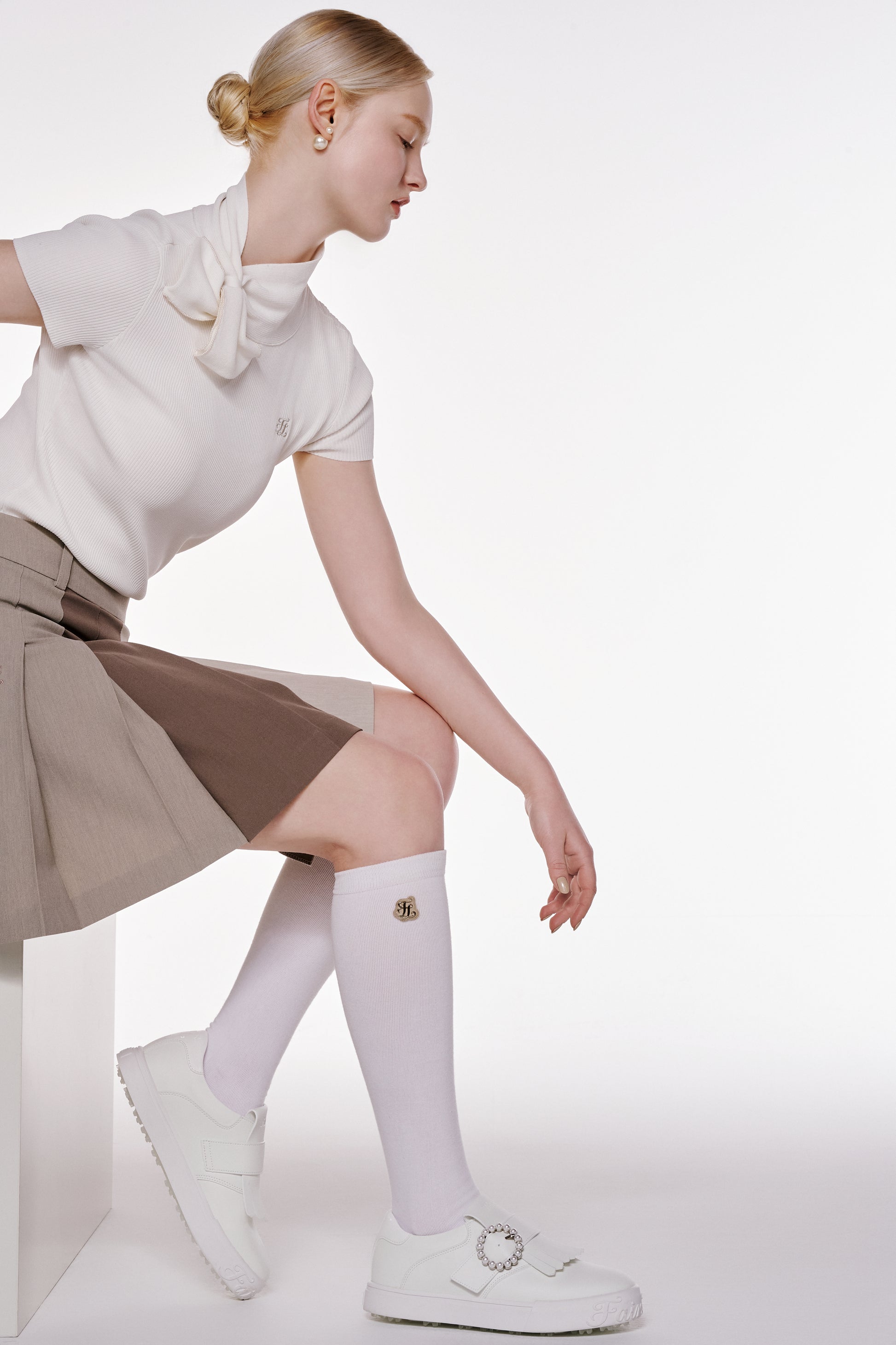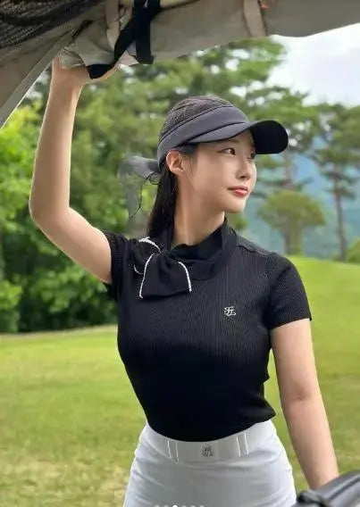 クールな触感の高伸縮機能性の原糸を使用しており、快適な着心地を実現します。パールのビッグリボンが可愛らしさと華やかさを演出し、デザインにアクセントを加えています。