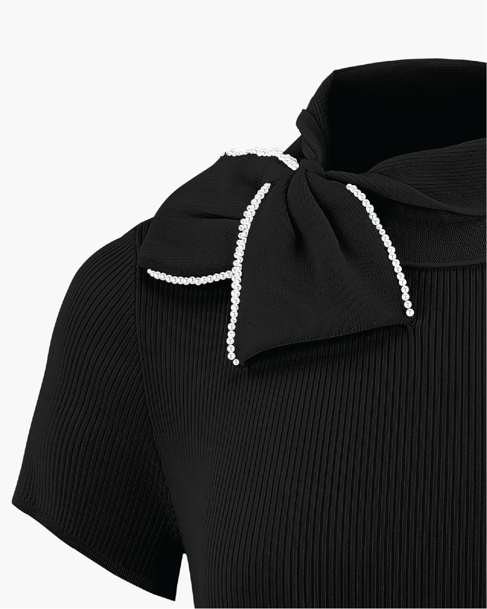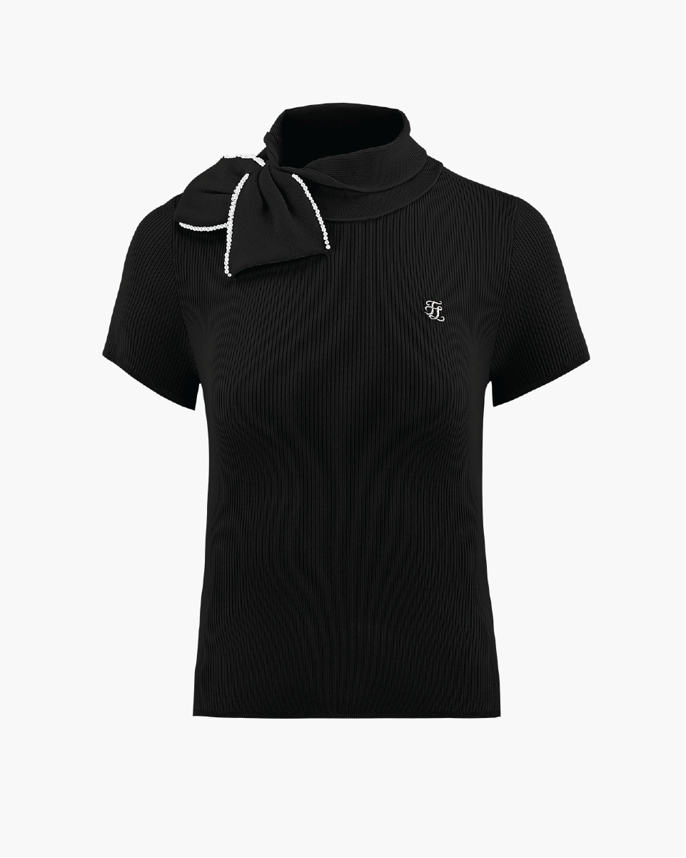 ビックリボン付きスリムフィットニット。