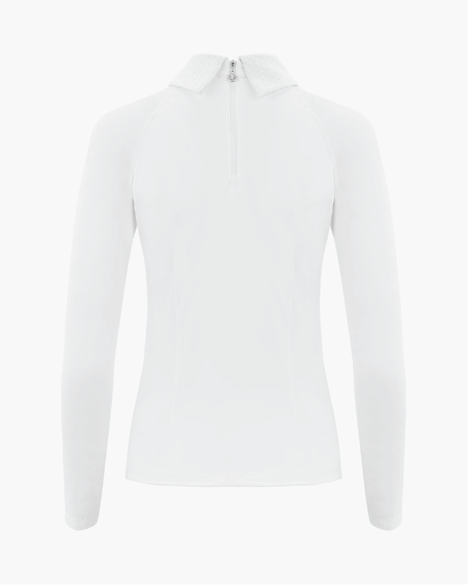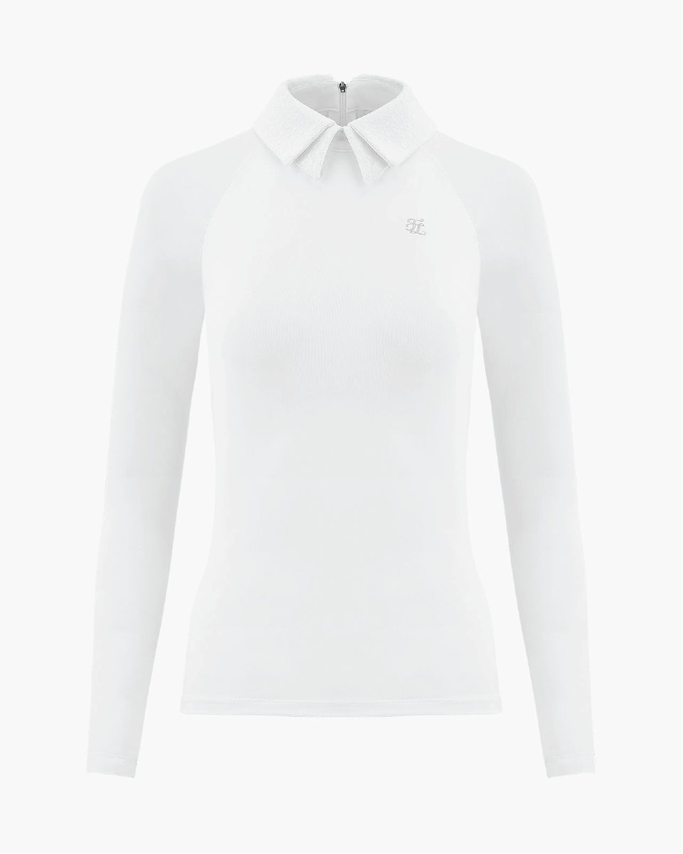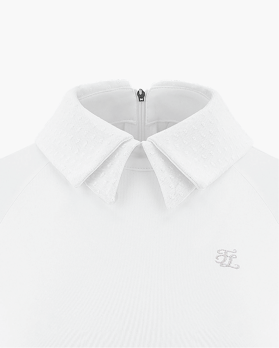 冷感素材の袖やUVカット機能を備えた生地を使用し、快適さを提供するアイテムです。首元のドットデザインが可愛らしく、洗練された雰囲気を演出します。FM4SK04Fのスカートとセットアップでの着用が可能で、インナーとしても単品としても様々なコーディネートに対応できる、スタイリッシュで多機能なアイテムです。