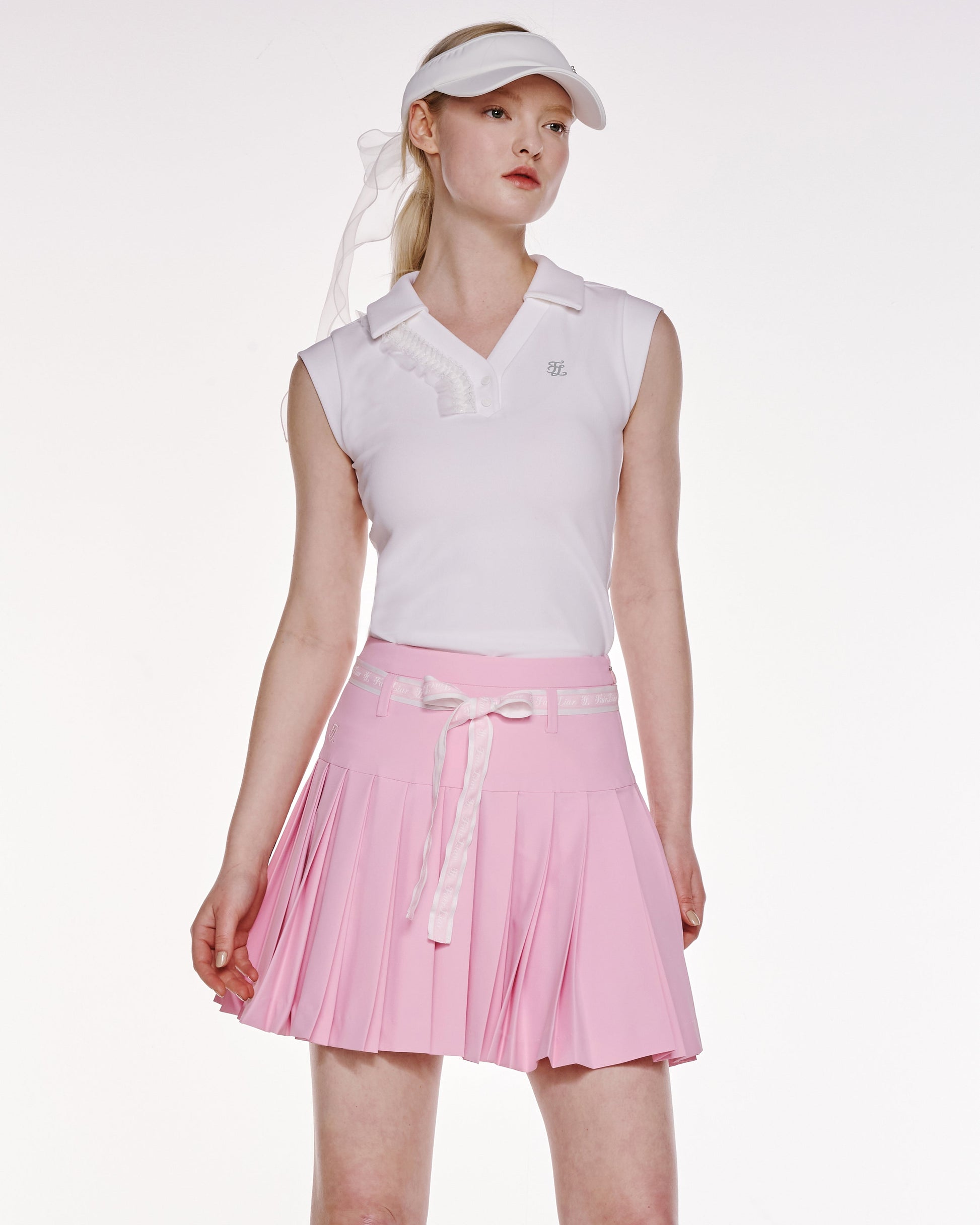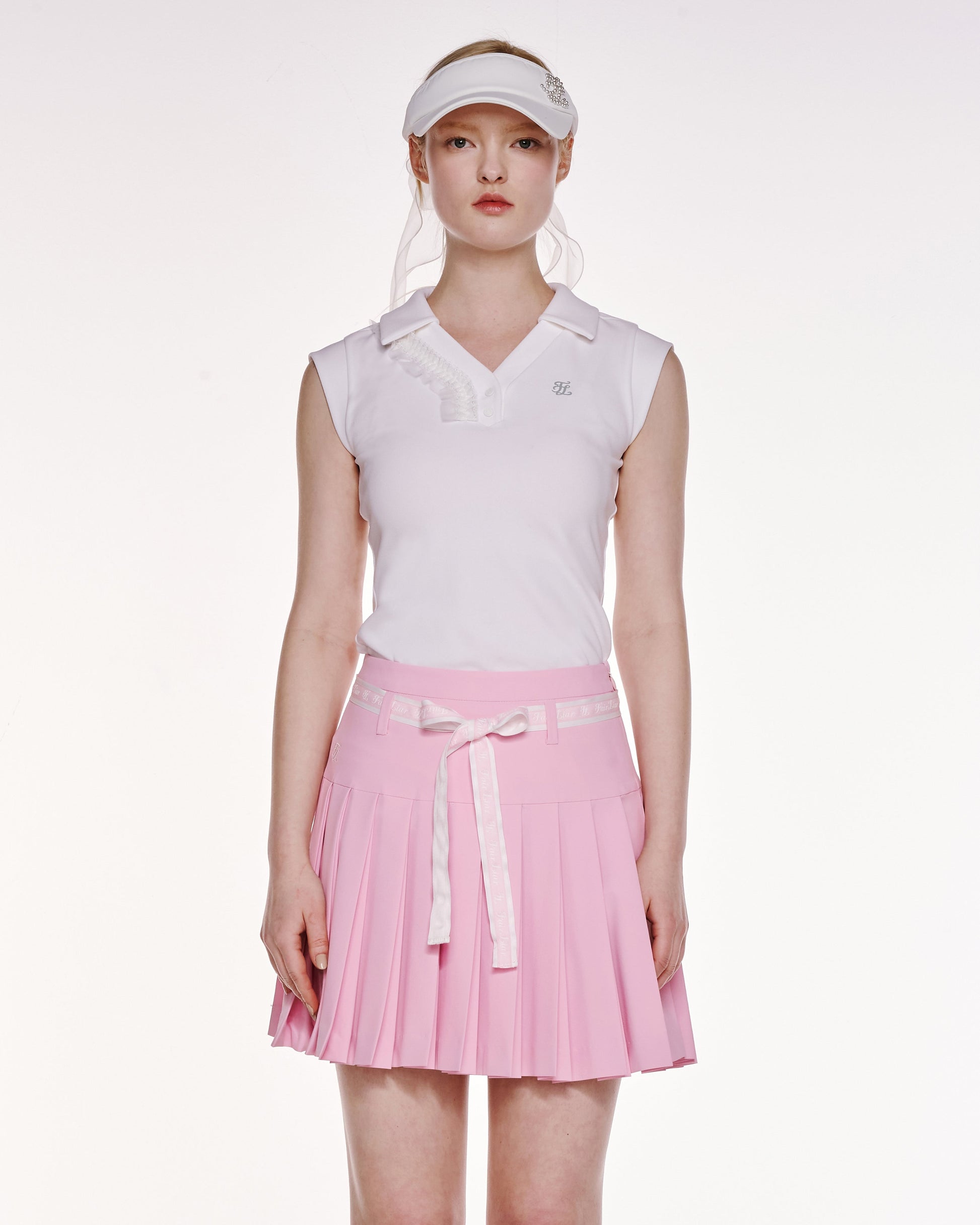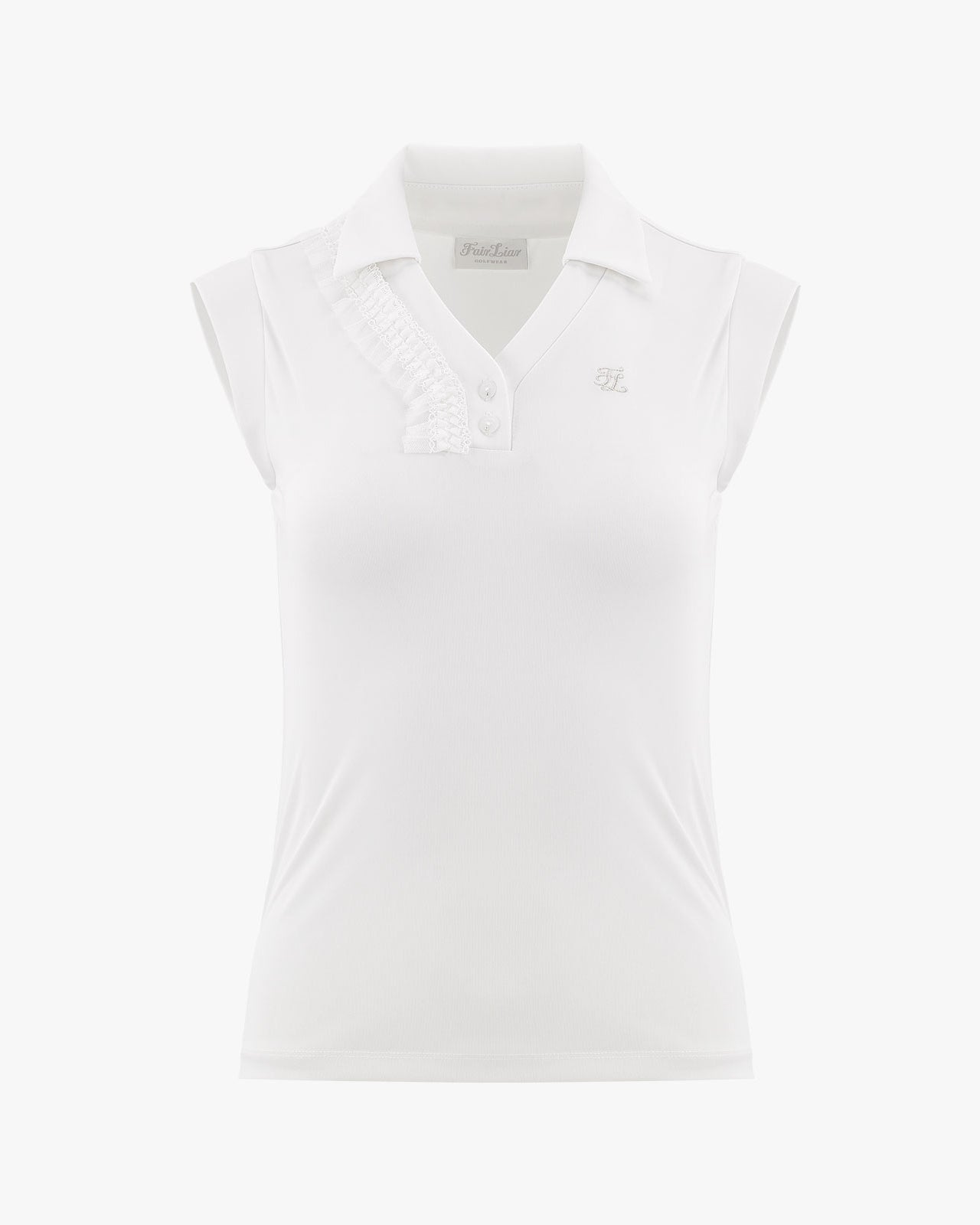 UVカット、吸湿速乾、接触冷感、しわ防止などの多機能素材を使用しています。片側に施されたレースデザインが、ユニークで印象的なアイテムです。