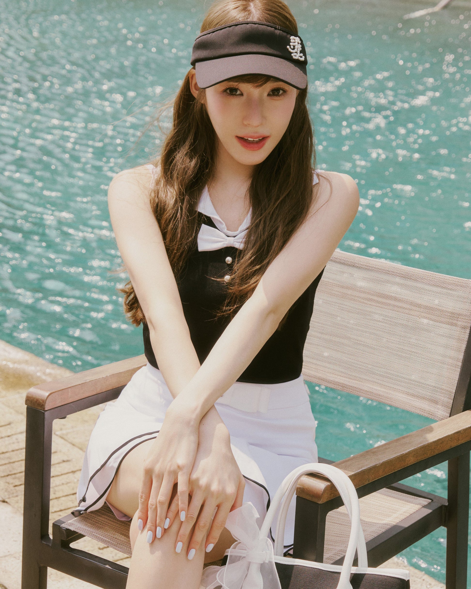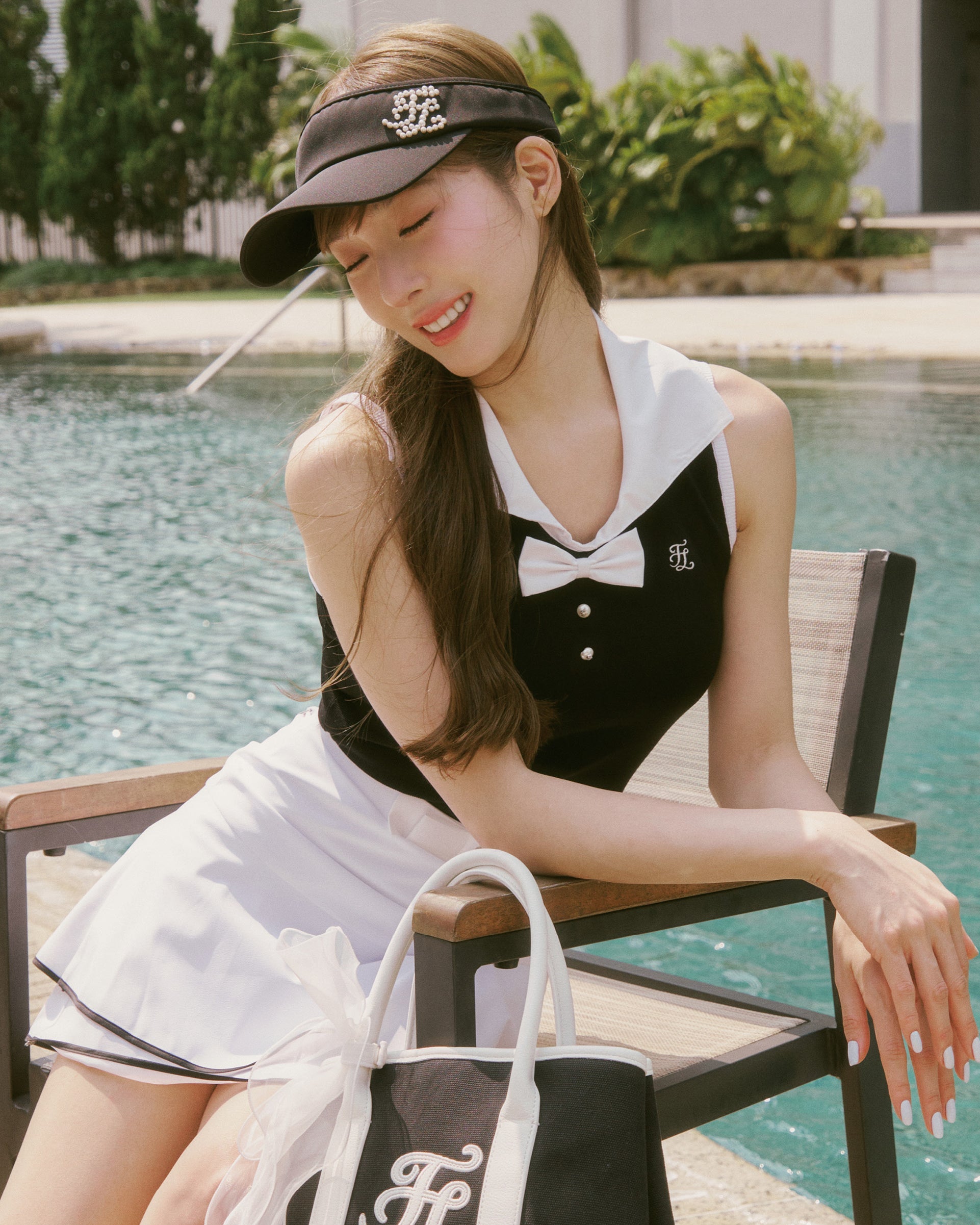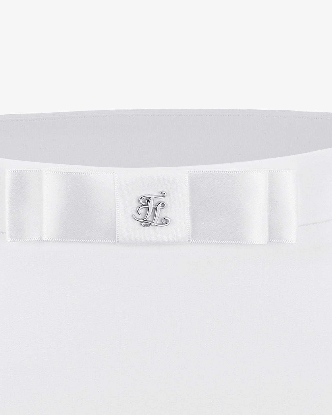 ウエスト部分はしっかりとホールドする設計で、美しいシルエットをキープ。さらに、フロントのメタルロゴがまるでベルトのようなアクセントを演出し、洗練された印象に。