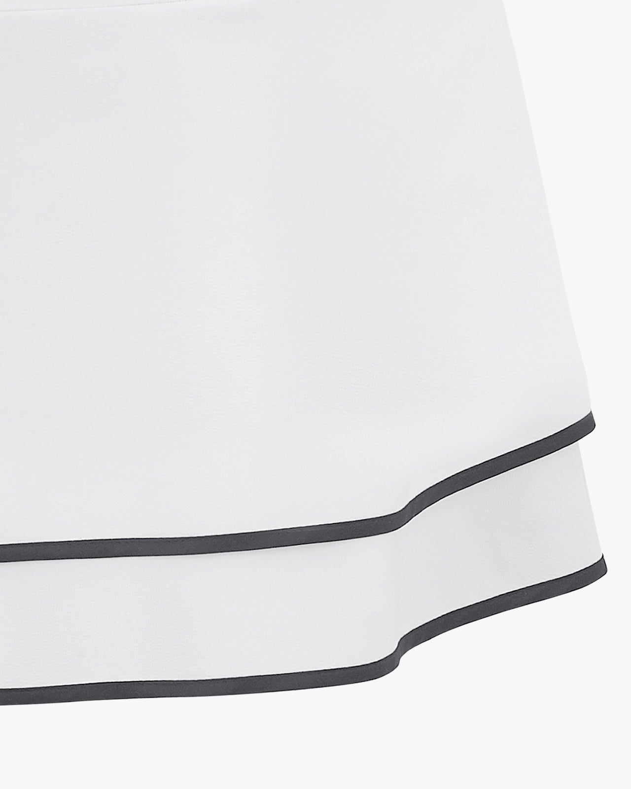 2枚仕立ての裏地とインナーパンツを内蔵し、透ける心配なく安心して着用可能。軽やかさと快適な着心地を兼ね備えています。