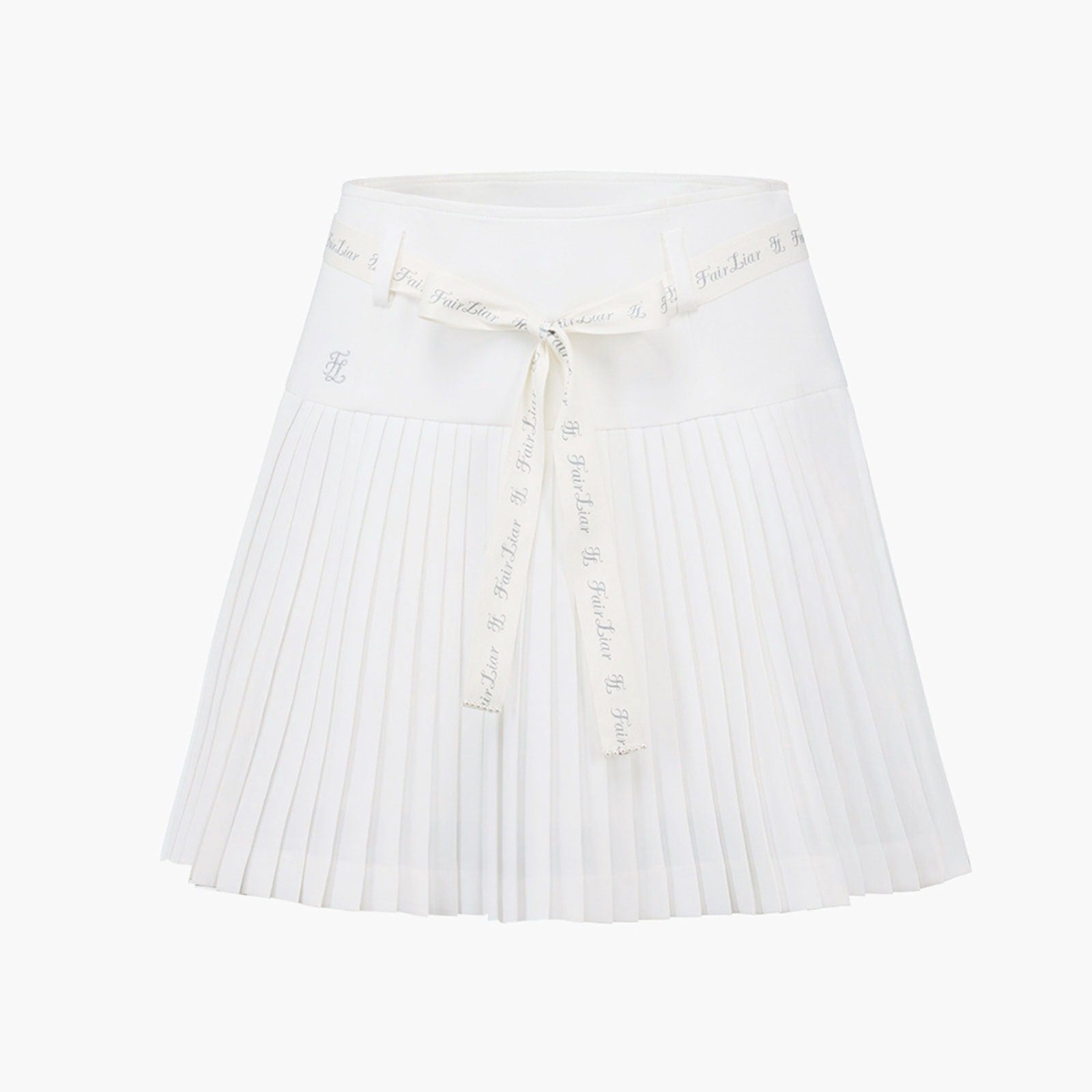 一般的なプリーツスカートとは異なり、ウエスト部分が広めに設計されたハイウエストデザイン。プリーツがすぐに始まらず、脚長効果&バランスの良いスタイルを実現します。