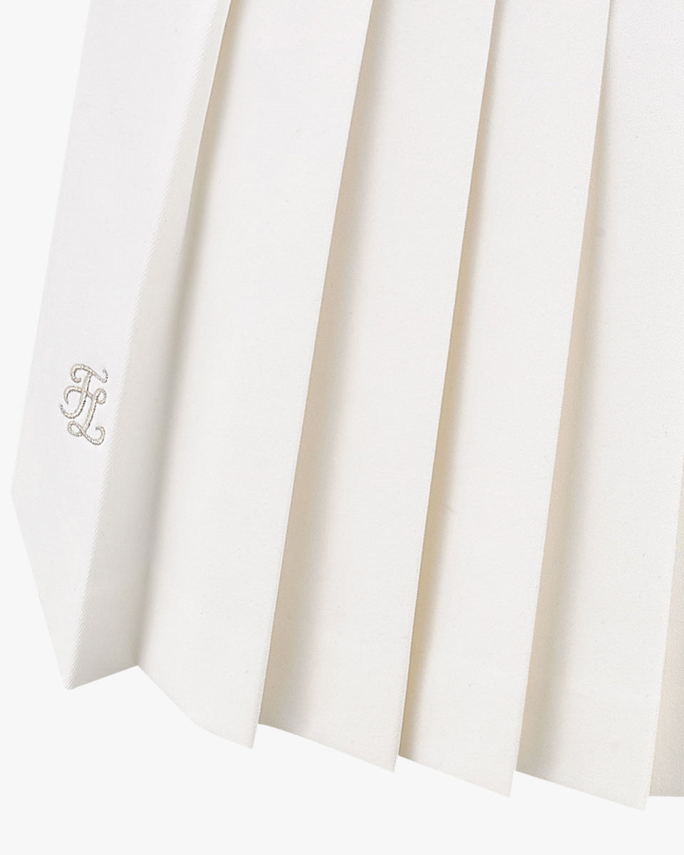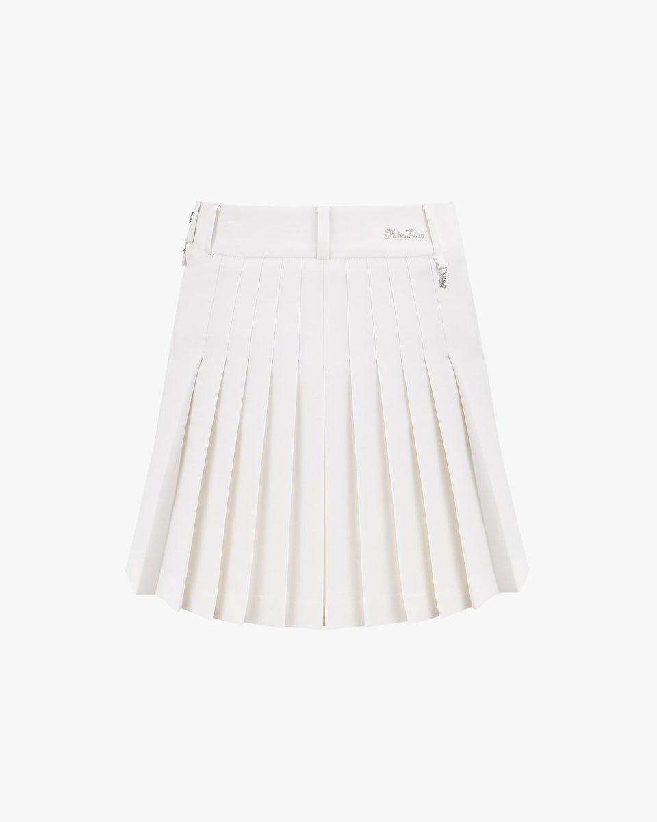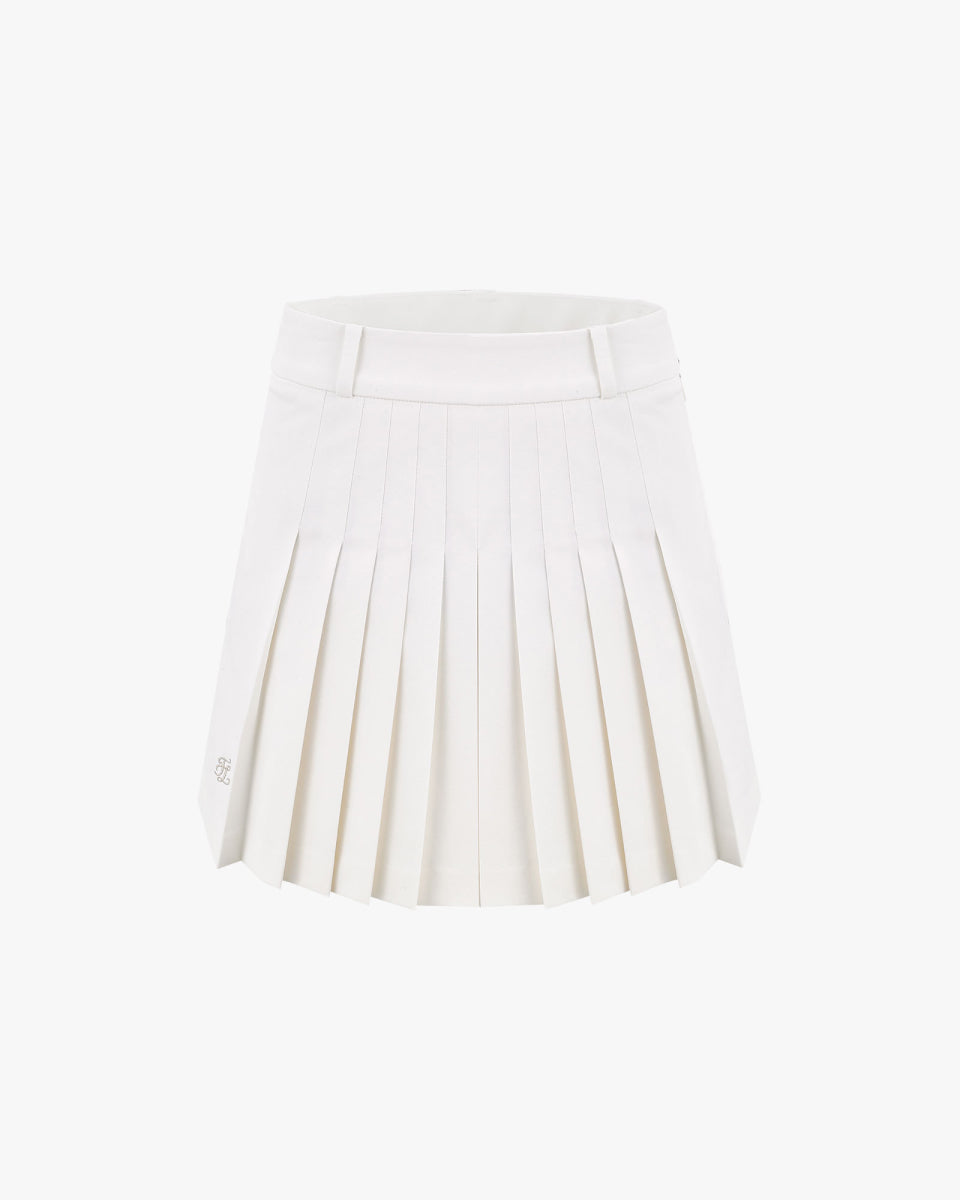 左右対称で、内側に向かうほどプリーツの間隔が狭くなるデザインを採用。視覚的にスリムなシルエットを演出し、ヒップラインを美しく見せる効果があります。
