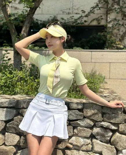 24SS シーズンスカーフセット付きスリムフィットTシャツ。