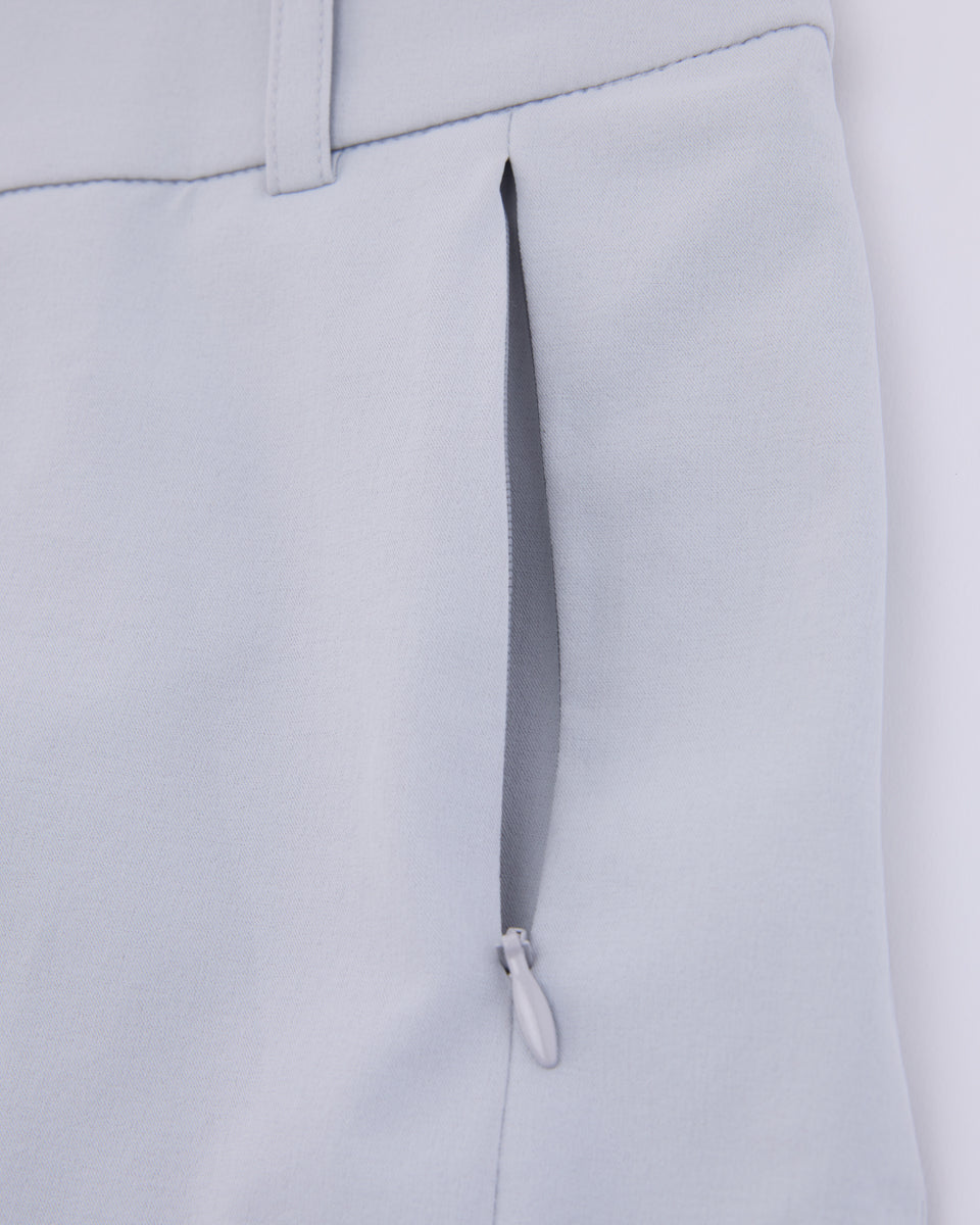 前面のポケットにはコンシールファスナーを採用し、体にフィットする設計。ポケット部分のふくらみを防ぎ、よりスリムなシルエットを実現。