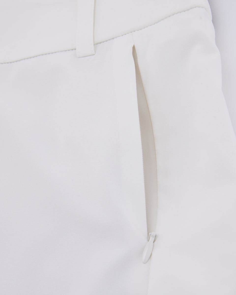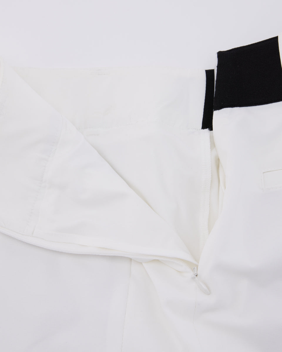 Hラインスカートはお腹周りが目立ちやすいですが、後ろウエスト部分にバンドを使用し、気になる部分を自然にカバー。スリムで美しいシルエットをキープします。
