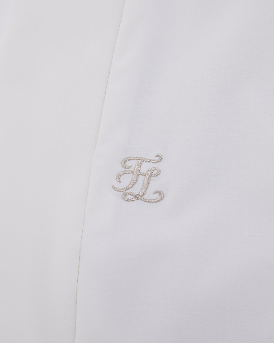 スポーティーながらも洗練されたフェミニンな雰囲気をプラス。フロントのコンシールファスナーポケットでスリムなラインをキープ