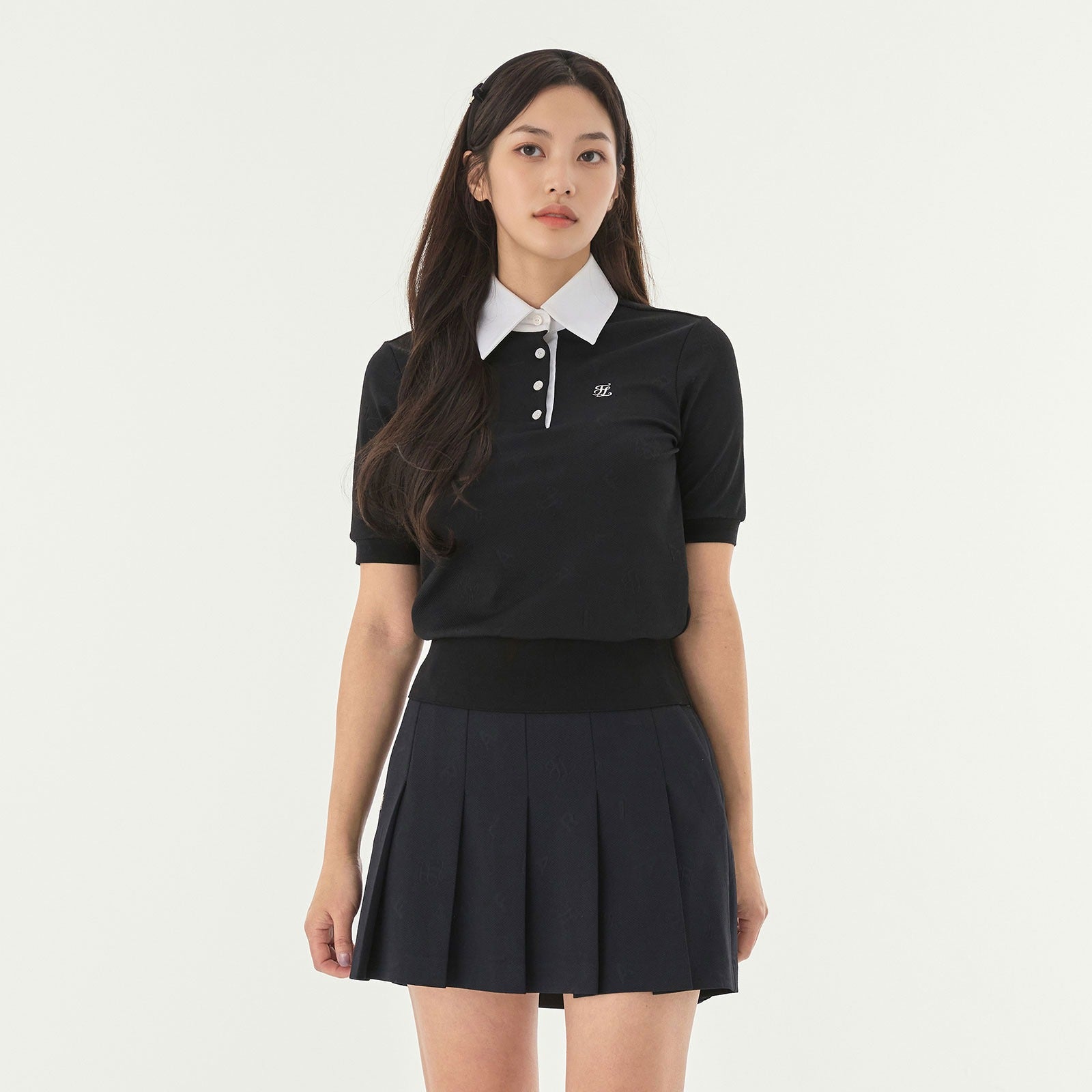 きちんと感のあるウーブン素材の襟で、シンプルかつ洗練された印象に。