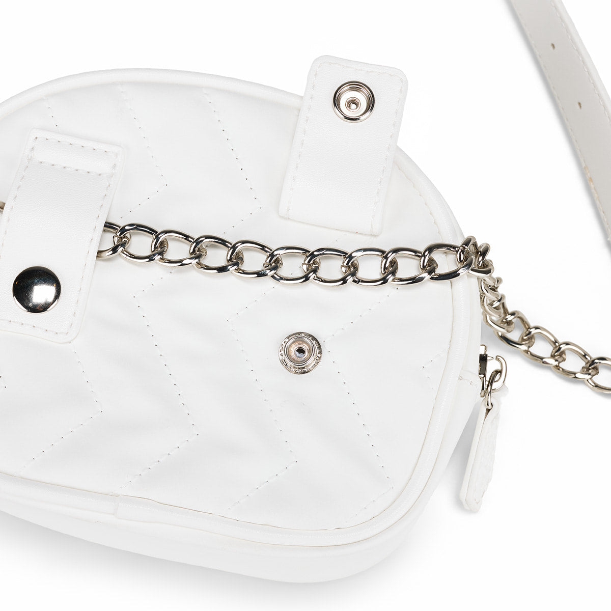 パールチェーンキルティングヒップバッグ (ホワイト)