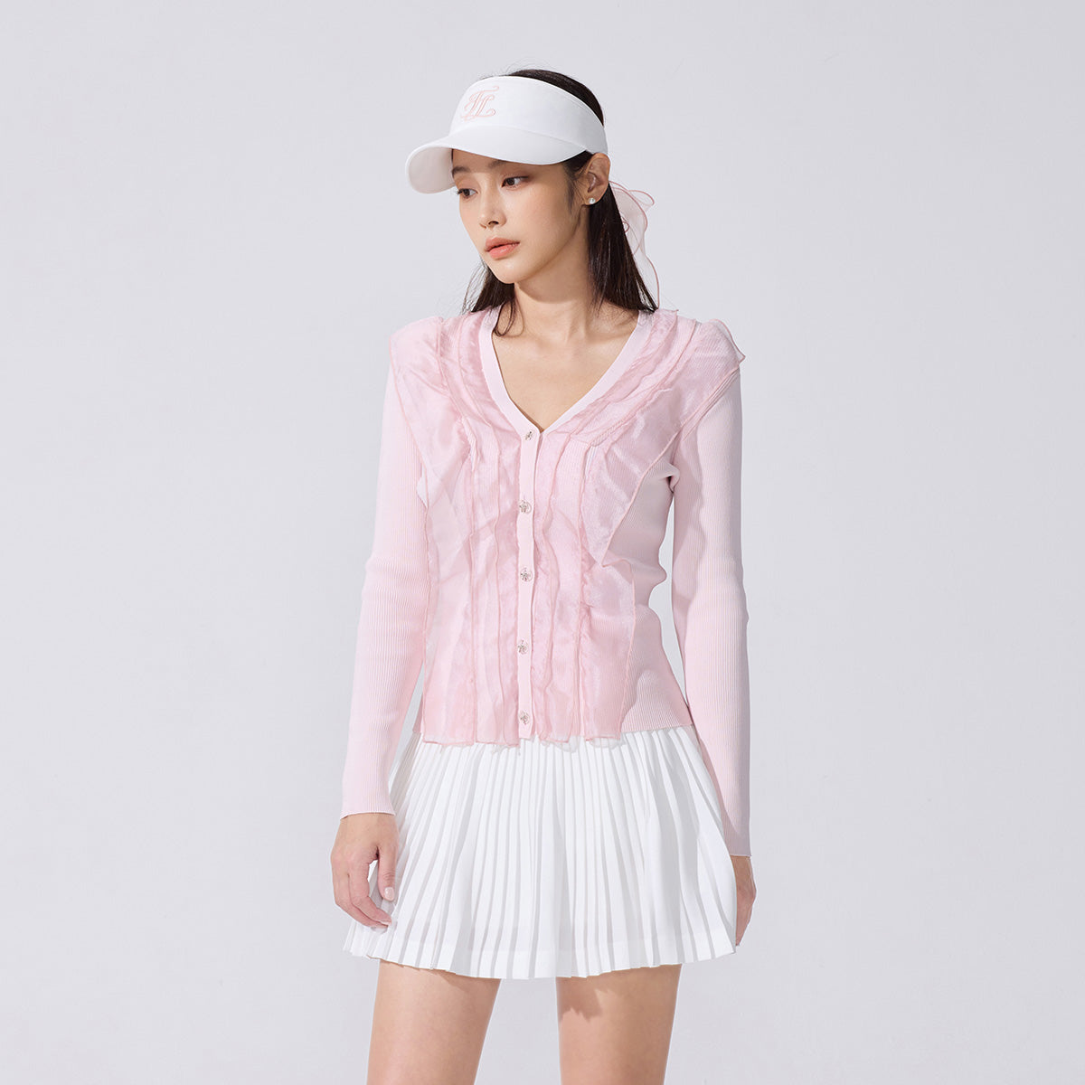オーガンジーVネックカーディガン (コーラル)