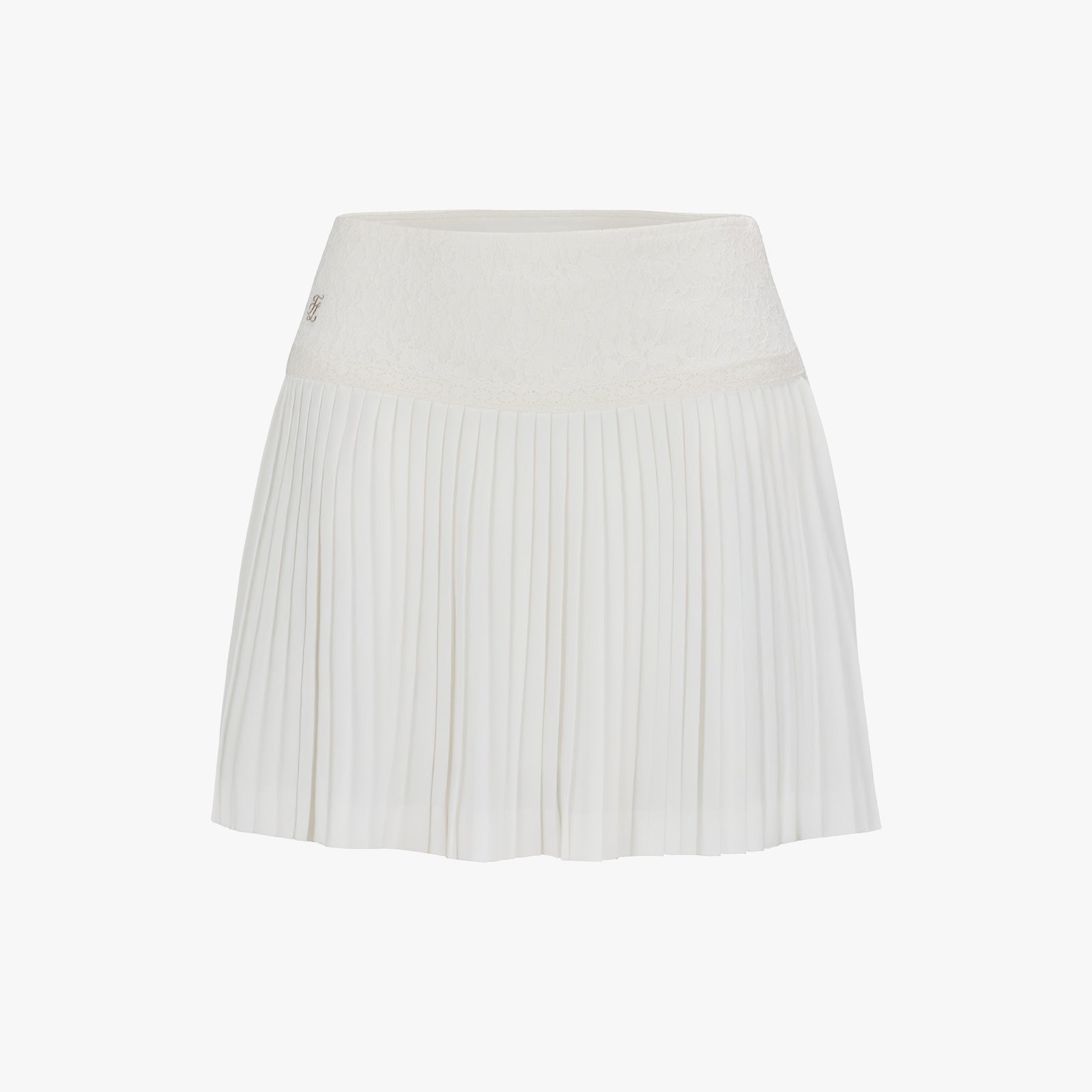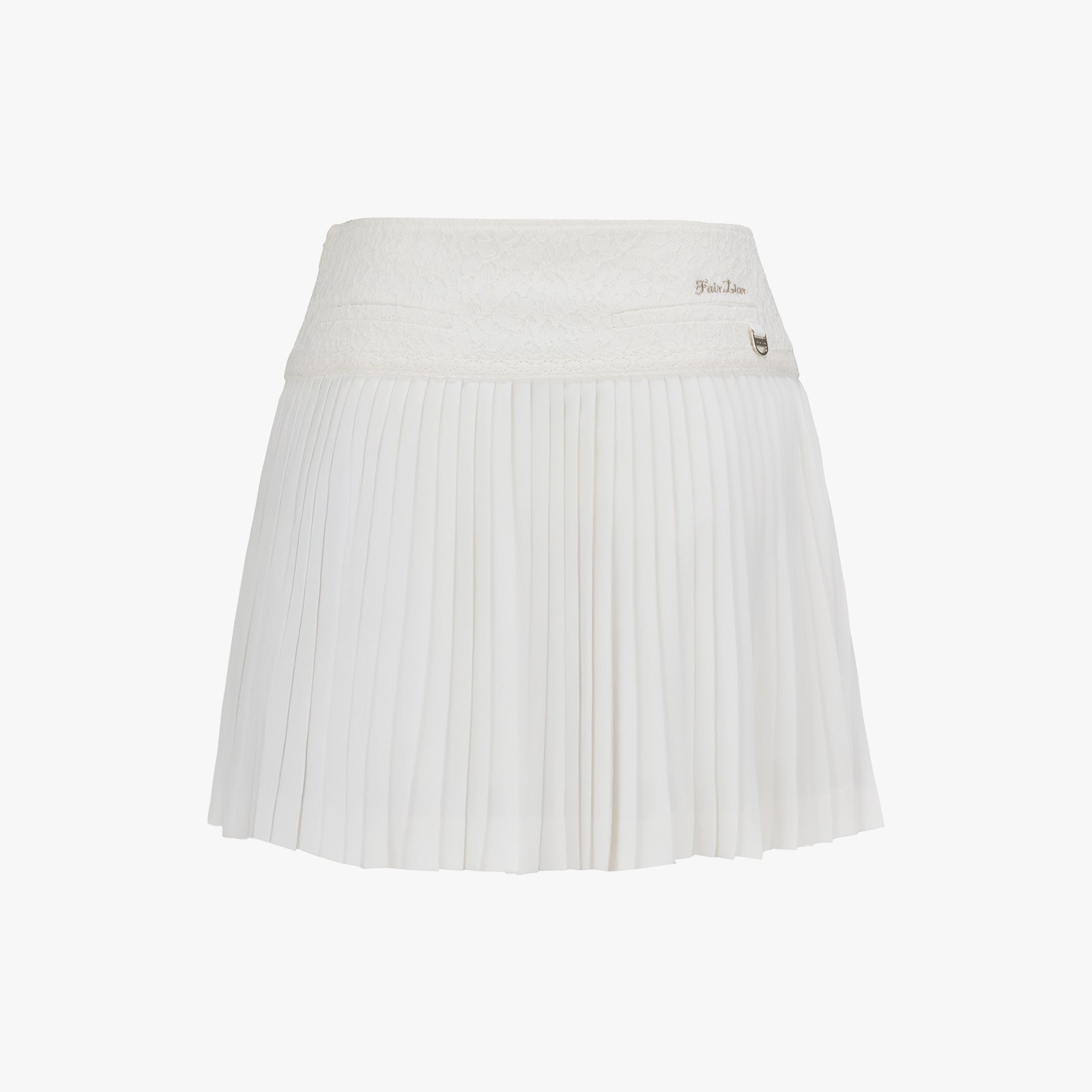 レースフレアプリーツスカート (ホワイト)