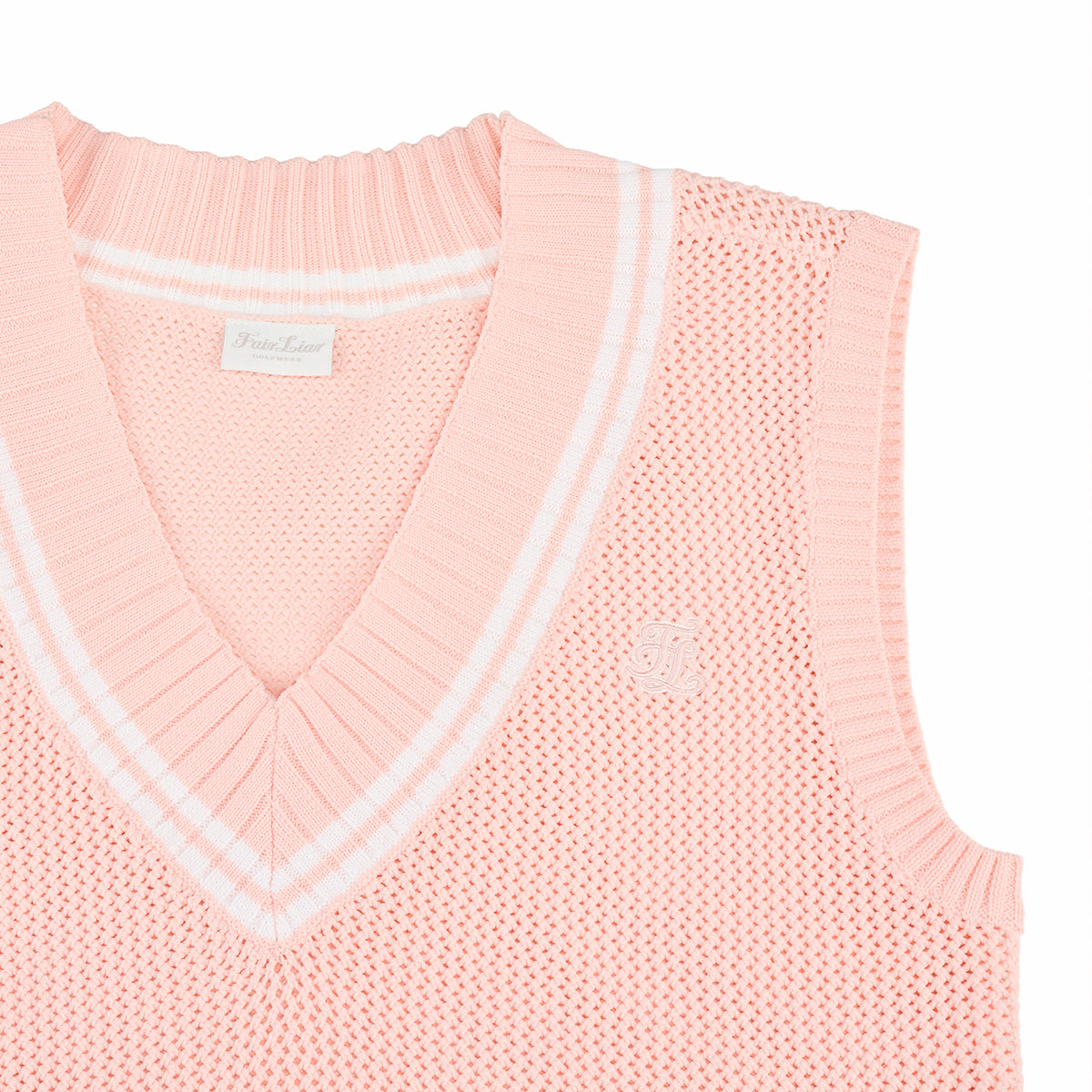 スカシ編みVネックベスト (コーラル)