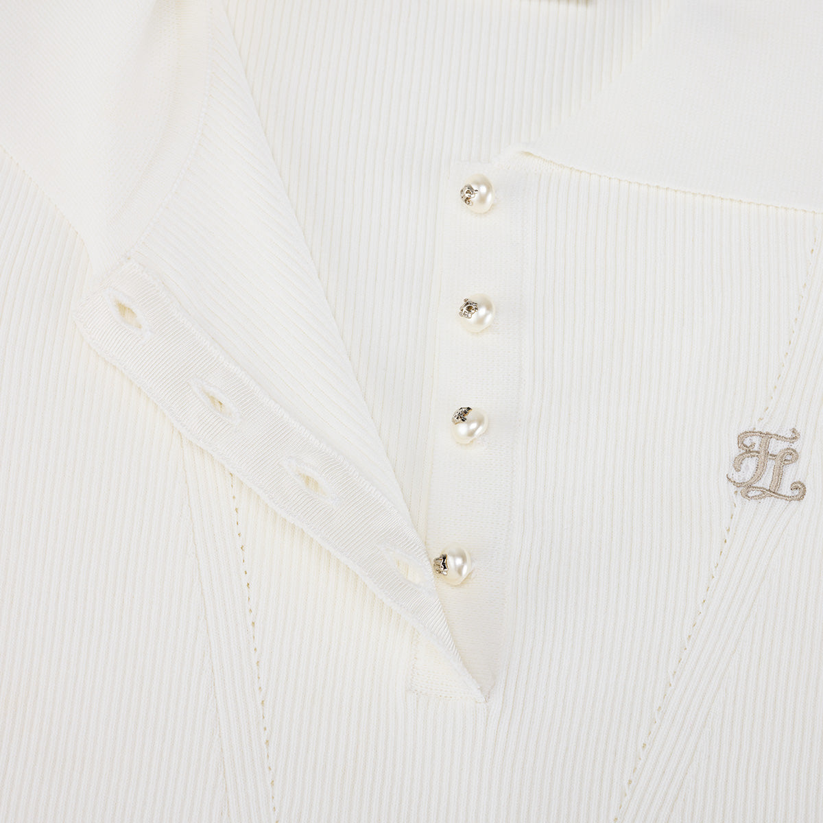 リブ7分袖ニット (ホワイト)