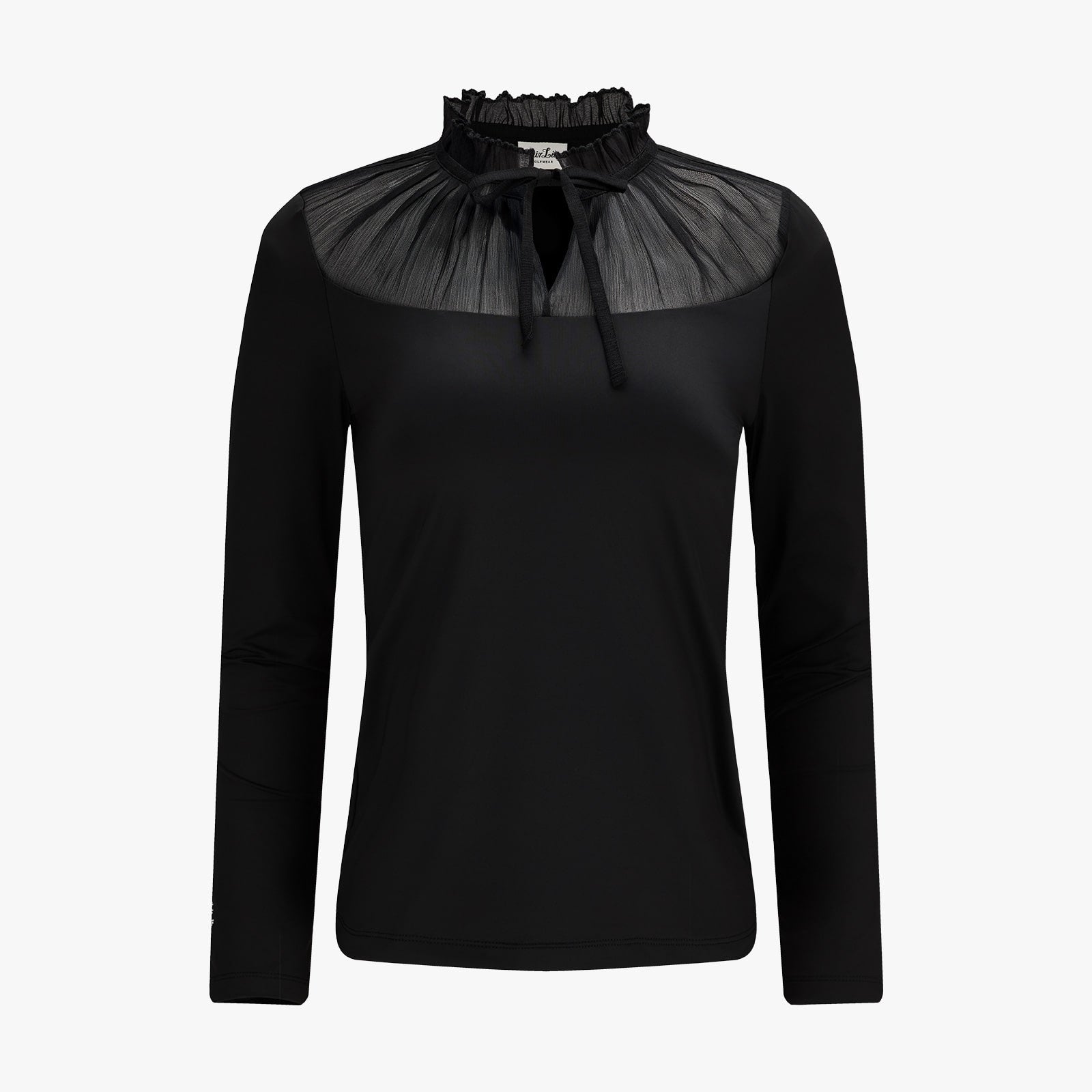 シースルーシャーリングハイネックTシャツ (ブラック)