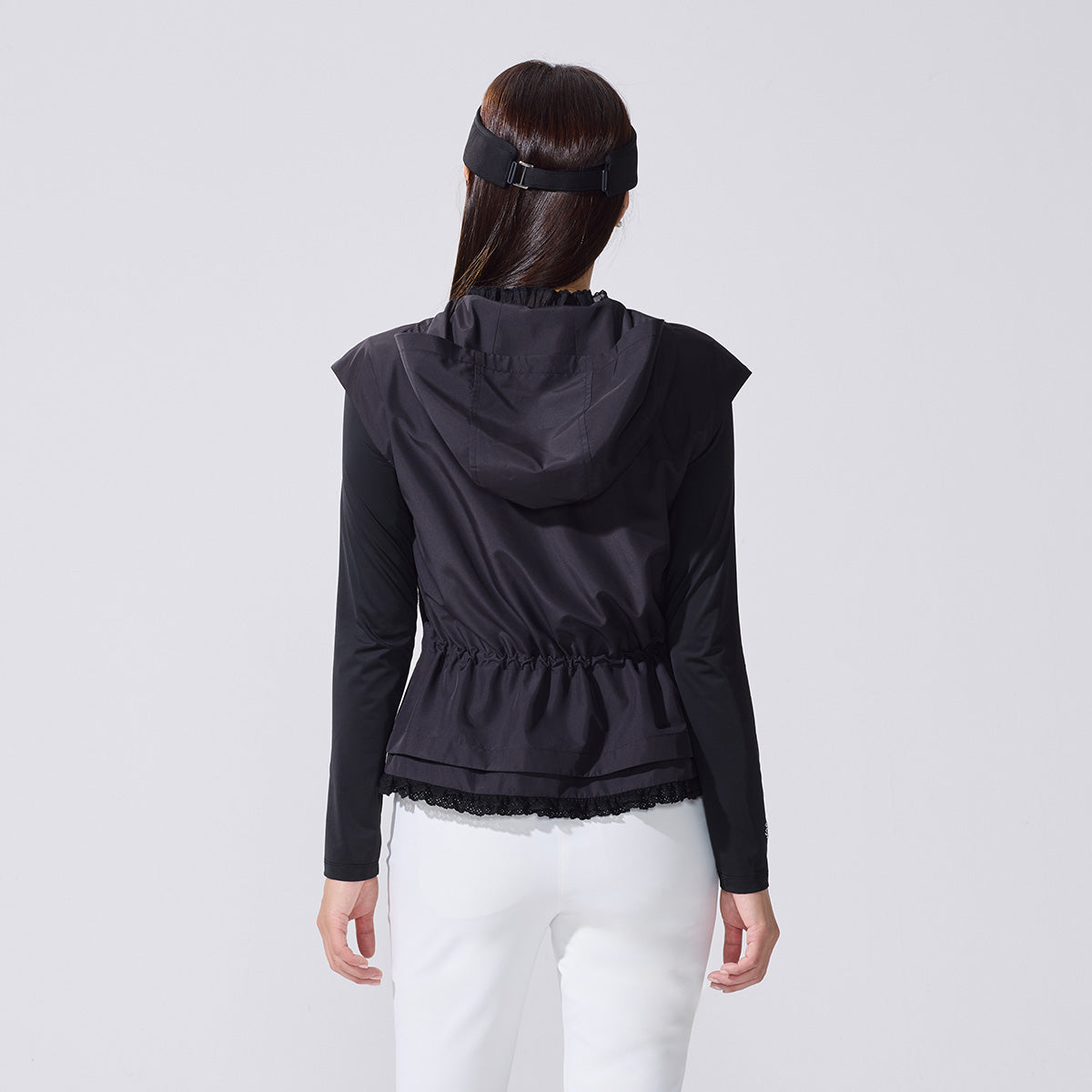 ドローストリングラッフルジップベスト (ブラック)